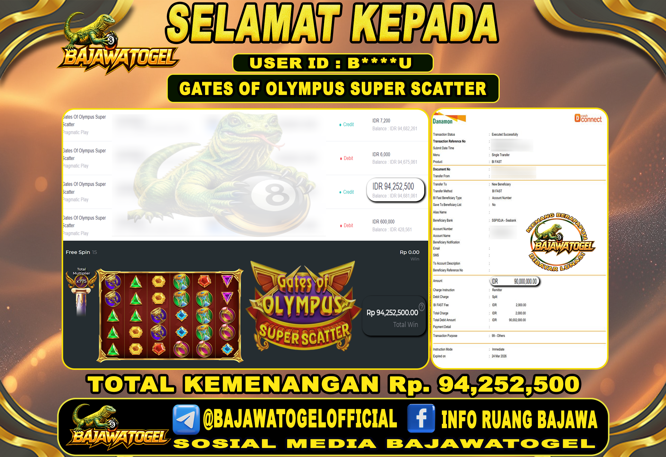 Tidak hanya janji manis, di BAJAWATOGEL kamu bisa melihat langsung bukti jackpot member yang benar-benar cair. Member yang disiplin, paham ritme permainan, dan rapi mengatur modal sudah membuktikan hasil nyata melalui kemenangan yang konsisten.