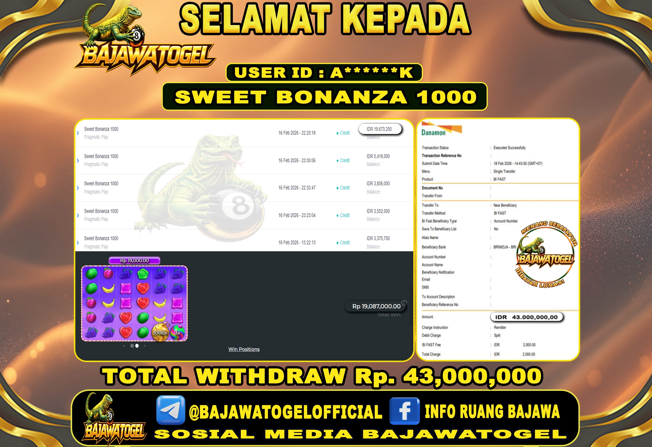 Tidak hanya janji manis, di BAJAWATOGEL kamu bisa melihat langsung bukti jackpot member yang benar-benar cair. Member yang disiplin, paham ritme permainan, dan rapi mengatur modal sudah membuktikan hasil nyata melalui kemenangan yang konsisten.
