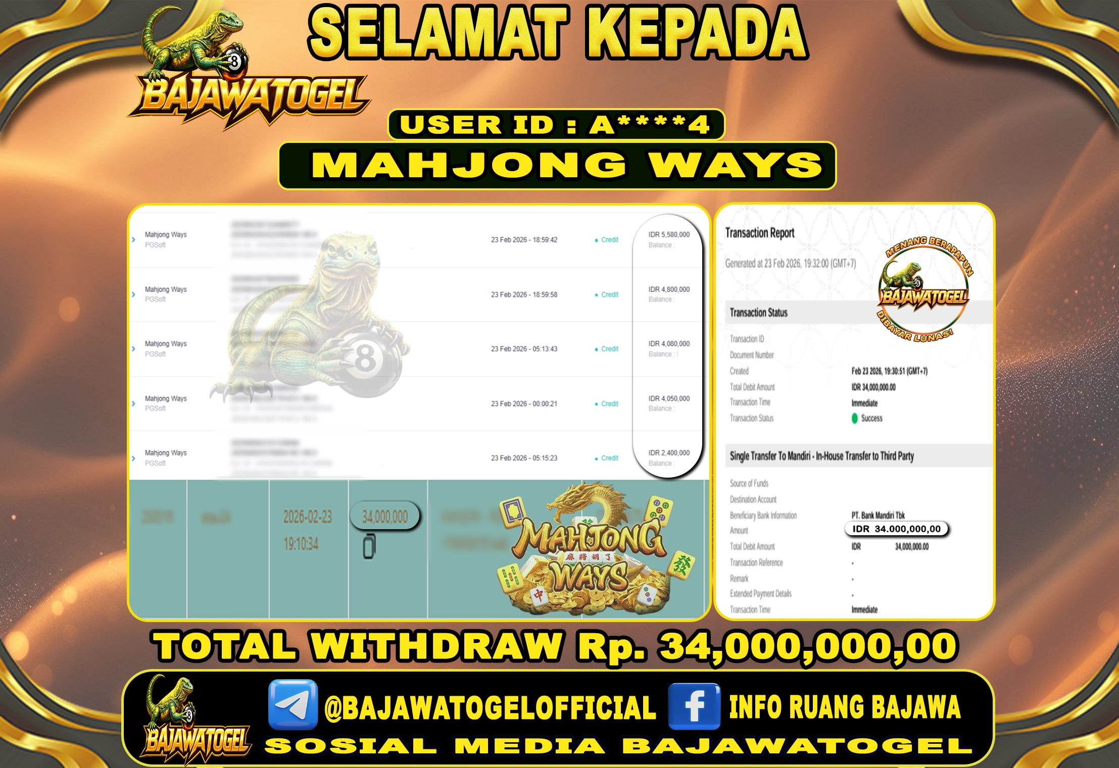 BAJAWATOGEL– Bukti Jackpot Slot Online senin,23 Februari 2026 menjadi sorotan para pemain karena menunjukkan kemenangan nyata yang berhasil diraih member melalui sistem permainan yang transparan dan data result yang akurat. Pada penarikan hari Sabtu tersebut, banyak pemain berhasil menembus jackpot di BAJAWATOGEL.