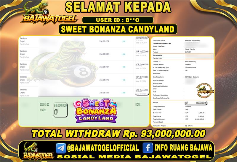 BUKTI JACKPOT SLOT SWEET BONANZA CANDYLAND SABTU, 21 FEBUARY 2026 Rp.93.000.000 - LUNAS