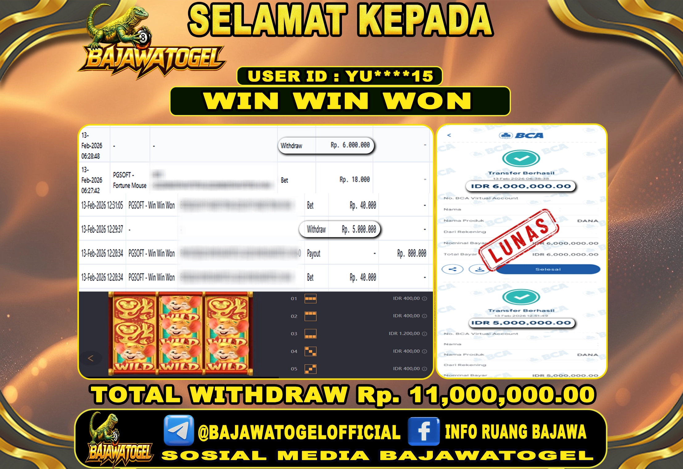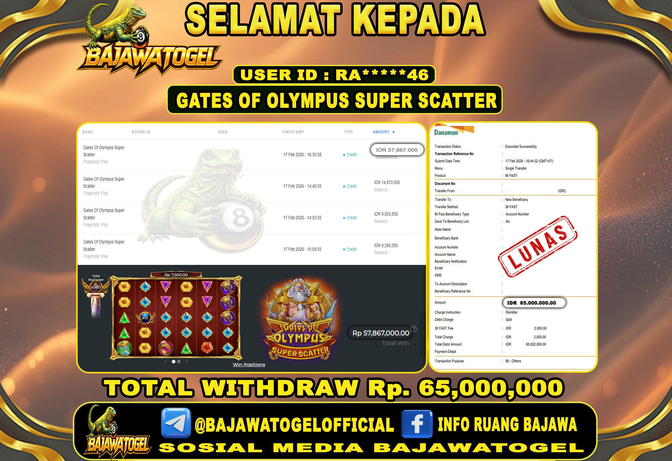 Tidak hanya janji manis, di BAJAWATOGEL kamu bisa melihat langsung bukti jackpot member yang benar-benar cair. Member yang disiplin, paham ritme permainan, dan rapi mengatur modal sudah membuktikan hasil nyata melalui kemenangan yang konsisten.